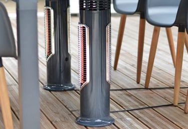 Stojące promienniki ciepła IMUS, które zapewniają komfort i ciepło w chłodne dni na świeżym powietrzu.